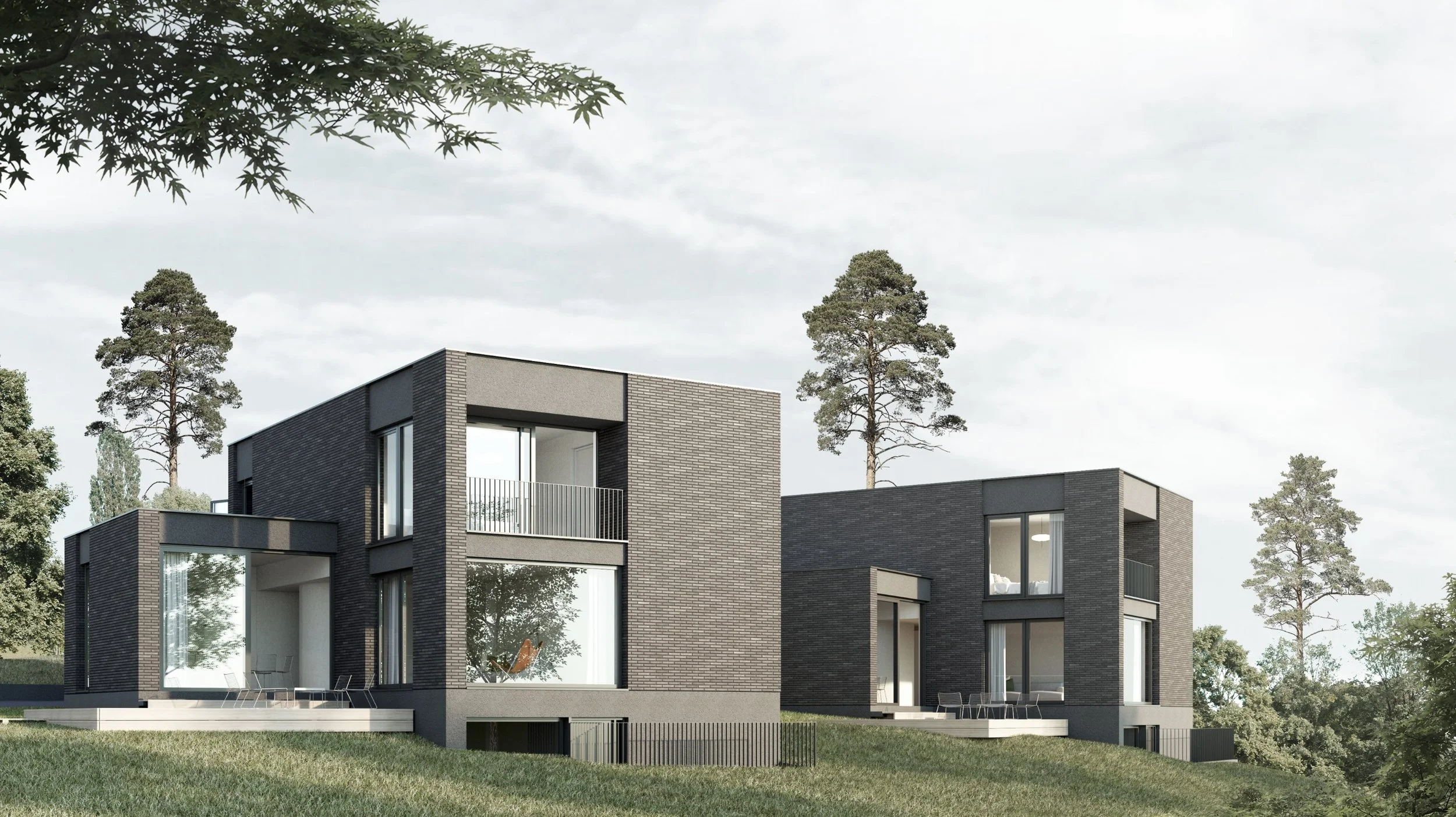 I Vestveien 7 blir det bygget tre eneboliger, i to ulike faser. Råbygget til alle tre husene er støpt samtidig, men kun to av husene er inkludert i den første byggefasen, som nå er ferdig. Den siste eneboligen gjenstår og vil bli bygget i 2027.